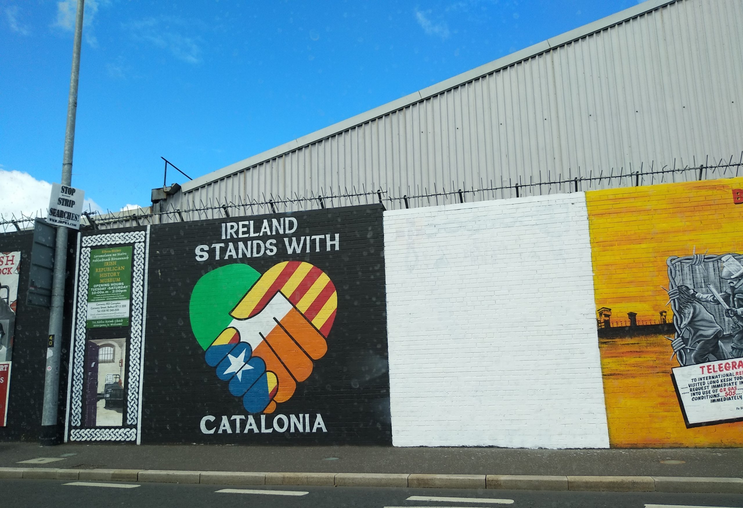 De paso a la Calzada de los Gigantes paramos a comer en Belfast, fuimos directo al muro de la paz, que es el muro que se construyó para separar la zona católica de la protestante, pues se lanzaban cocteles molotov  de un bario a otro. En su momento se cerraban la puertas de comunicación de un barrio con otro. Actualmente es un lugar turístico al que la gente acude a ver las pintadas del muro y hacerse fotos.